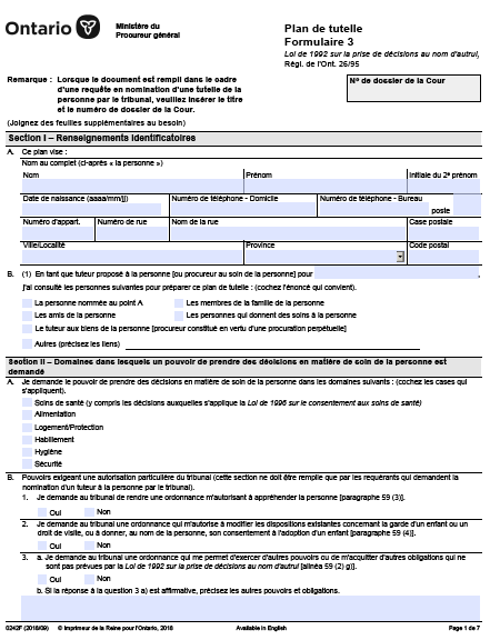 This form must be submitted by a person applying to court under the Substitute Decisions Act, 1992 to be appointed guardian of a person who is incapable of personal care.