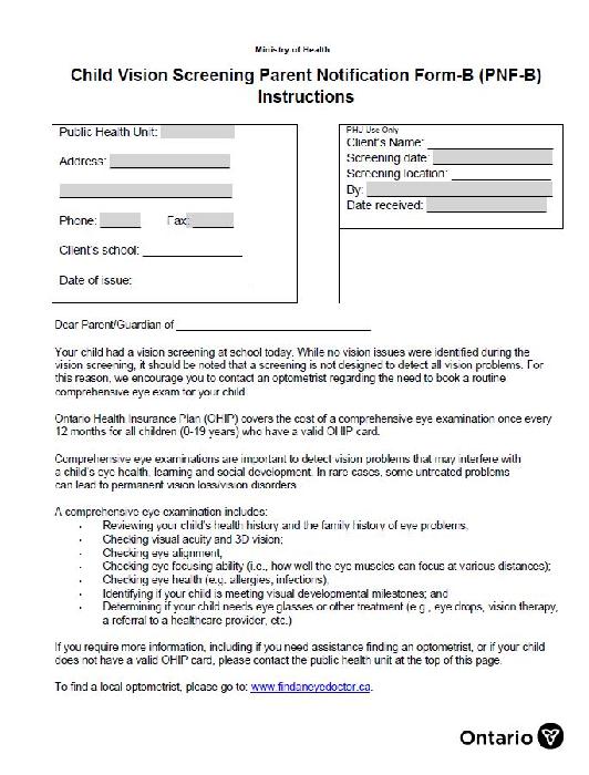 Child Vision Screening Parent Notification Form-B (PNF-B) Instructions