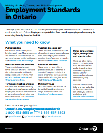 Multiple languages: (Online Version) Employment Standards Poster (2020)