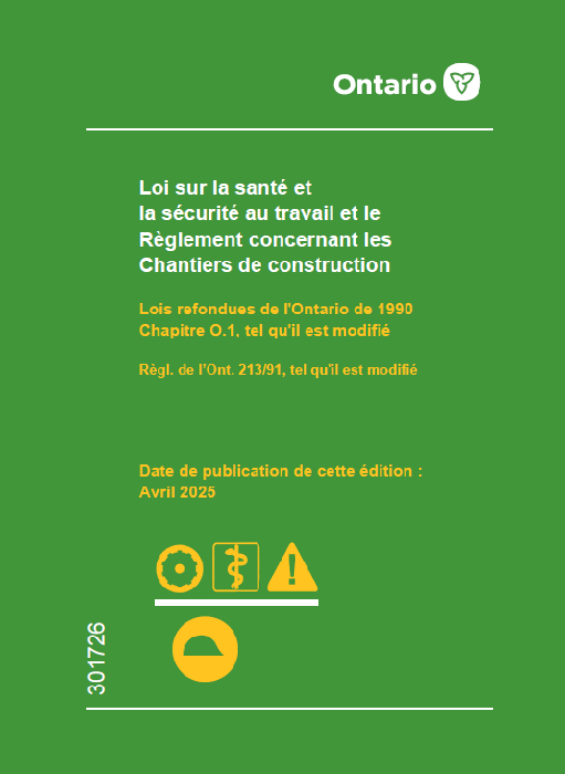 Loi sur la santé et la sécurité au travail et le Règlement concernant les Chantiers de construction; avril 2025