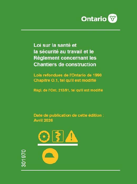 Loi sur la santé et la sécurité au travail et le Règlement concernant les Chantiers de construction; avril 2026