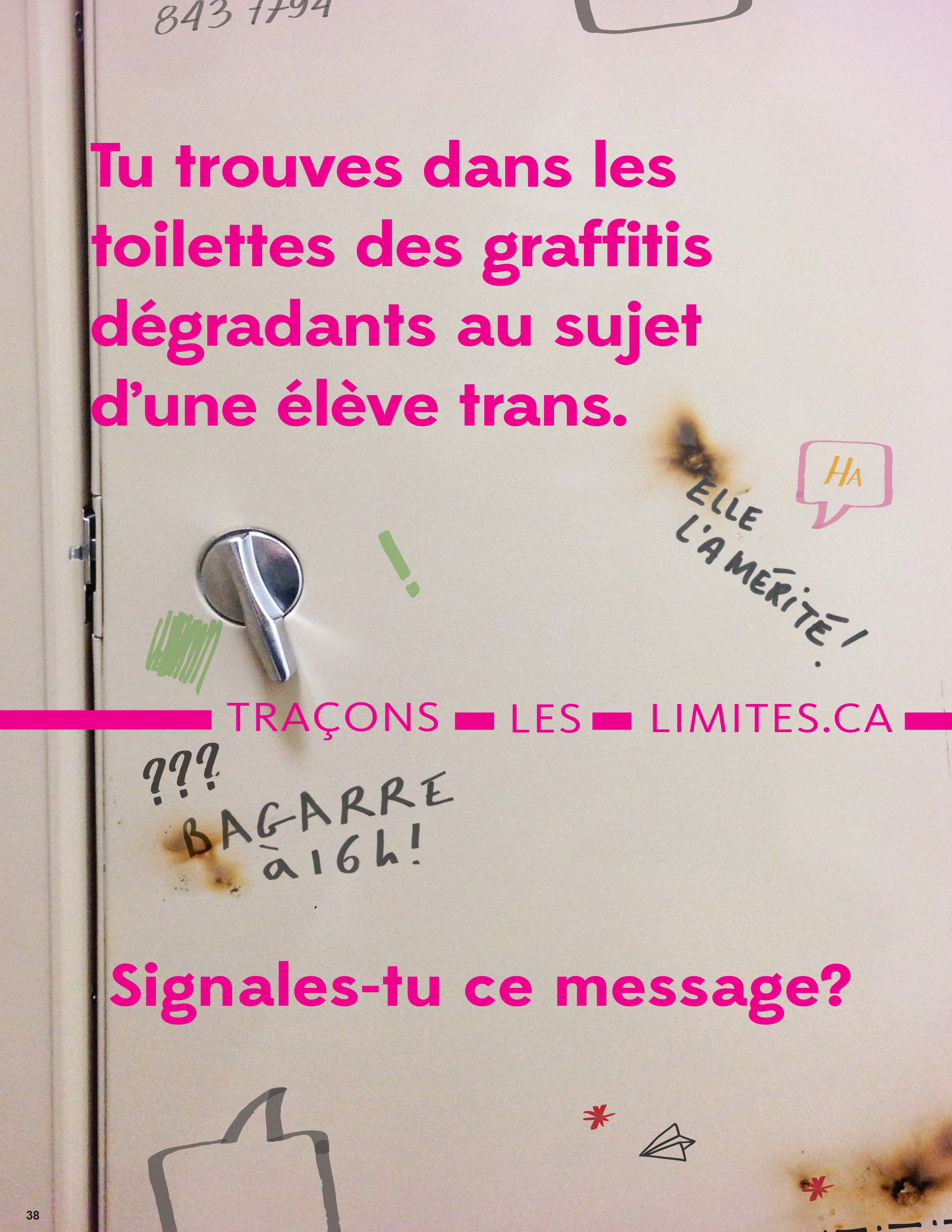 38 - Tu trouves dans les toilettes des graffitis dégradants au sujet d'un élève trans
