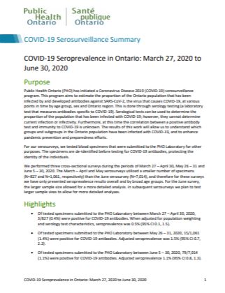COVID-19 Seroprevalence in Ontario : March 27, 2020 to June 30, 2020