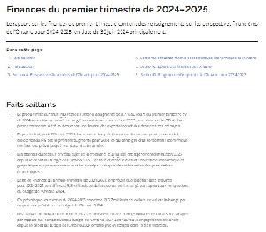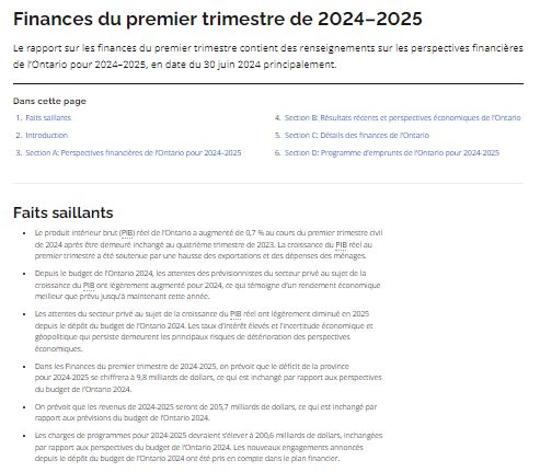 Rapports trimestriels des finances de l'Ontario 2024–25 trimestre 1