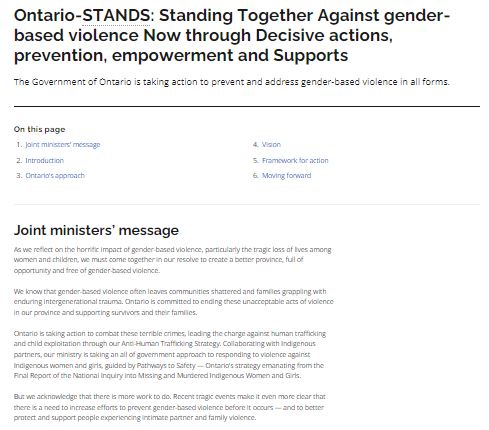 Ontario-STANDS : Standing Together Against gender-based violence Now through Decisive actions, prevention, empowerment and Supports