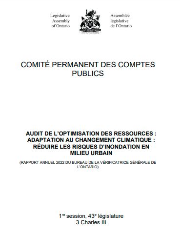 Audit de l’optimisation des ressources : Adaptation au changement climatique : réduire les risques d’inondation en milieu urbain : (Rapport annuel 2022 du bureau de la vérificatrice générale de l'Ontario)