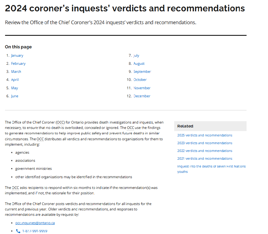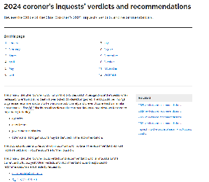 Coroner's inquests' verdicts and recommendations 2024