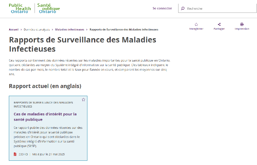 Rapports de Surveillance des Maladies Infectieuses, mars 2025
