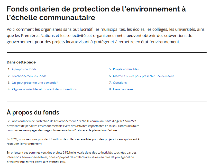 Fonds ontarien de protection de l’environnement à l’échelle communautaire