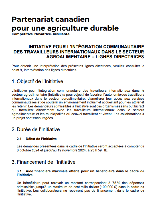 Initiative pour l’Intégration Communautaire des Travailleurs Internationaux dans le Secteur Agroalimentaire – Lignes Directrices