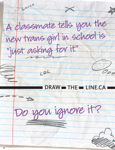 26 - A classmate tells you that new trans girl in school is '"just asking for it"'