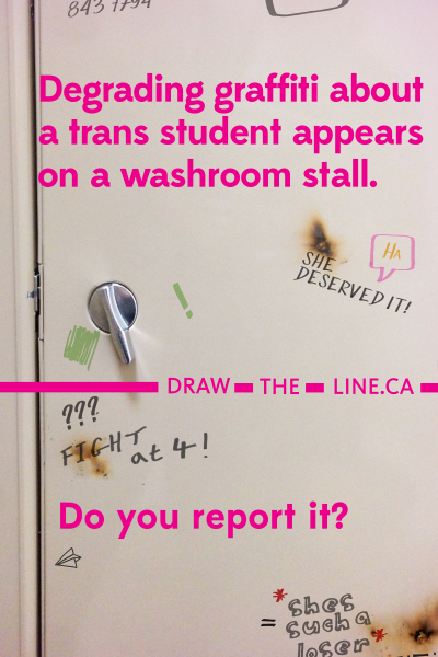 35 - Degrading graffiti about a trans student appears on a washroom stall
