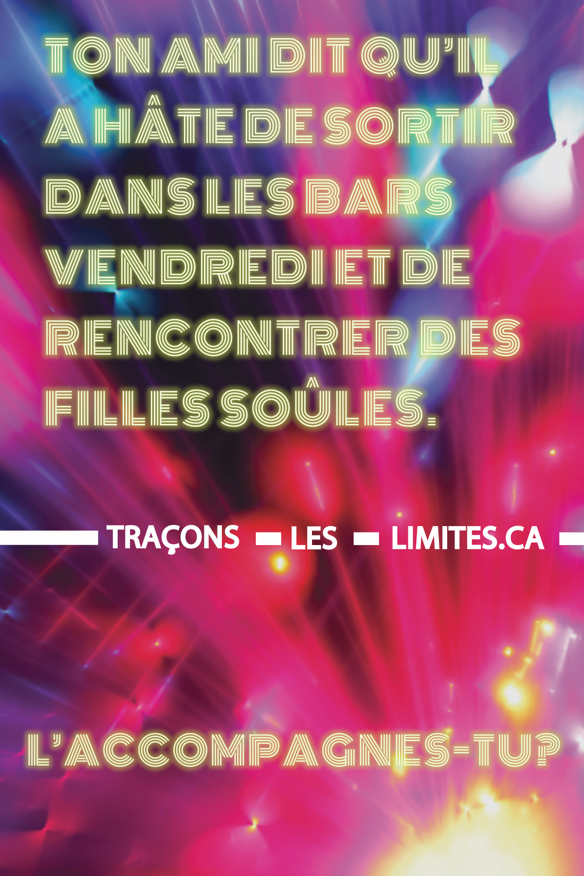 70 - Ton ami dit qu'il a hâte de sortir dans les bars vendredi et de ren contrer des filles soûles
