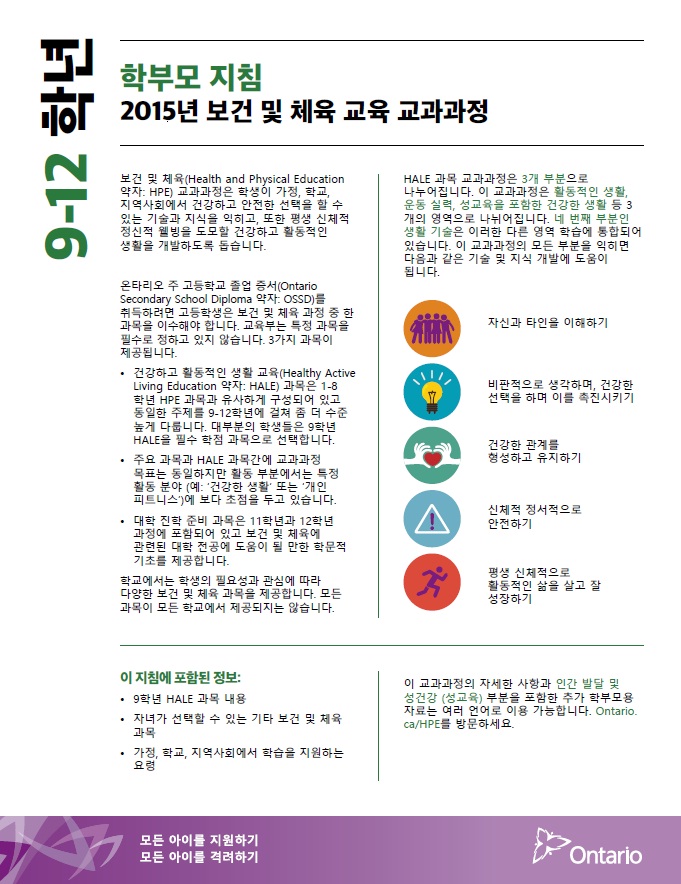A Parent's Guide: The 2015 Health and Physical Education Curriculum, Grade 9-12 (Korean)
