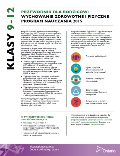 A Parent's Guide: The 2015 Health and Physical Education Curriculum, Grade 9-12 (Polish)