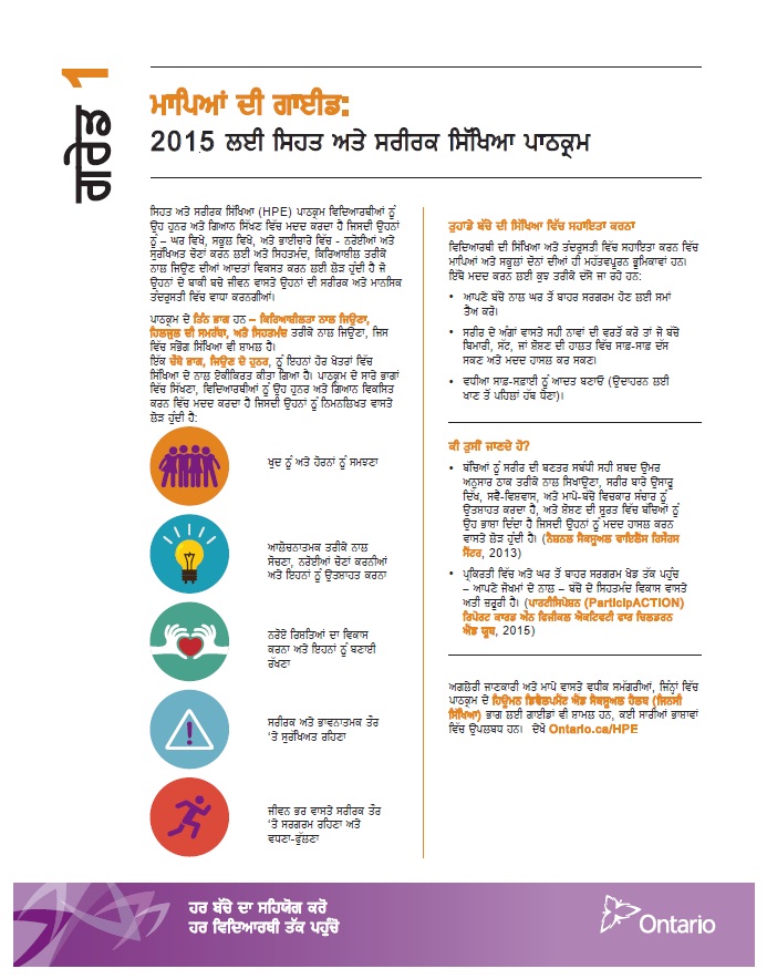 A Parent's Guide: The 2015 Health and Physical Education Curriculum, Grade 9-12 (Punjabi - Gurmukhi)