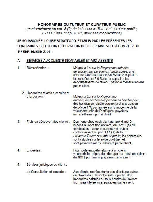 HONORAIRES DU TUTEUR ET CURATEUR PUBLIC