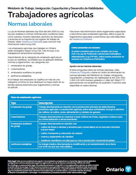 Agricultural Workers Tip Sheet (Spanish)