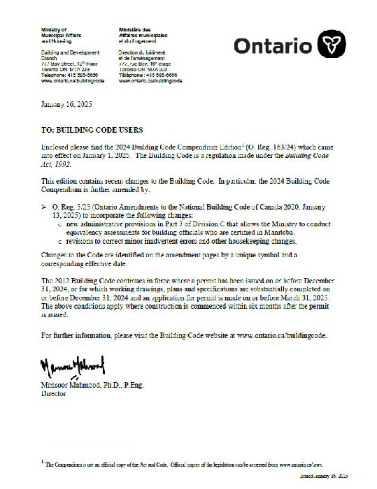 Amendment #1 - Ontario Regulation 447/24 - November 2, 2024 & Amendment #2 - Ontario Regulation 5/25 - January 16, 2025