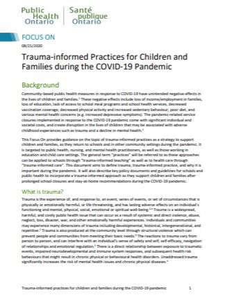 Trauma-informed Practices for Children and Families during the COVID-19 Pandemic