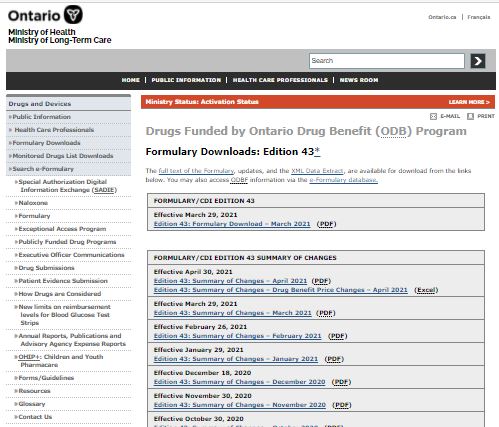Ontario drug benefit formulary/comparative drug index. v. 43 (2020 Dec. 18)