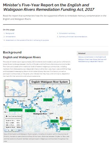 Minister’s Five-Year Report on the English and Wabigoon Rivers Remediation Funding Act, 2017