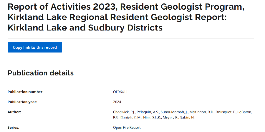 Report of Activities 2023, Resident Geologist Program, Kirkland Lake Regional Resident Geologist Report: Kirkland Lake and Sudbury Districts