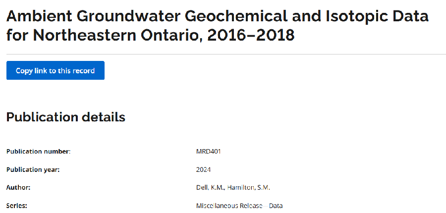 Ambient Groundwater Geochemical and Isotopic Data for Northeastern Ontario, 2016–2018