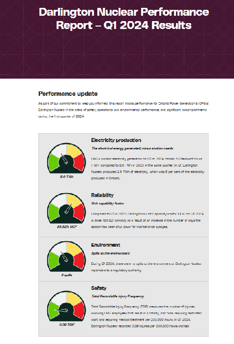 Performance report for Darlington Nuclear 2024 First Quarter