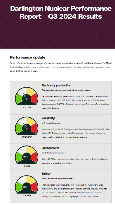 Performance report for Darlington Nuclear 2024 Third Quarter