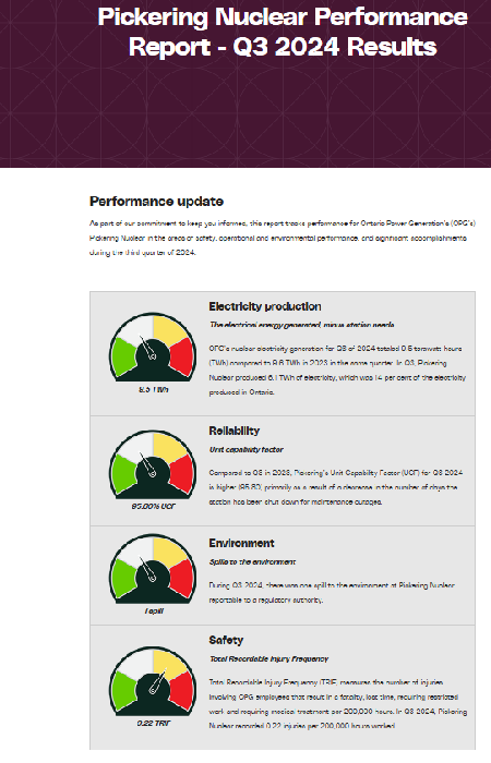 Performance report for Pickering Nuclear. 2024 Third Quarter