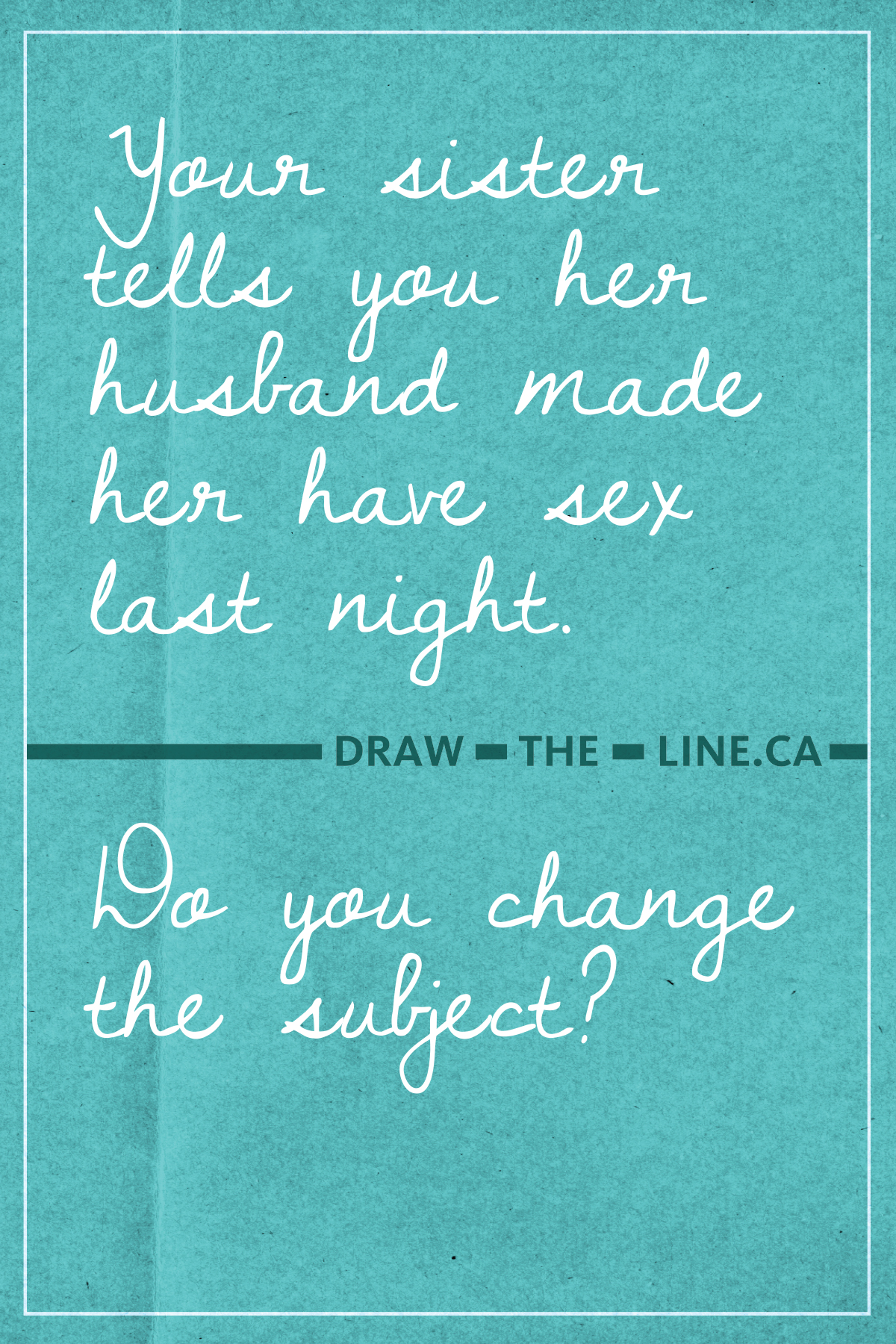 21 - Your sister tells you her husband made her have sex last night