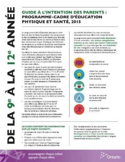Guide à l'intention des parents sur le programme-cadre d'éducation physique et santé de la 9e à la 12e année