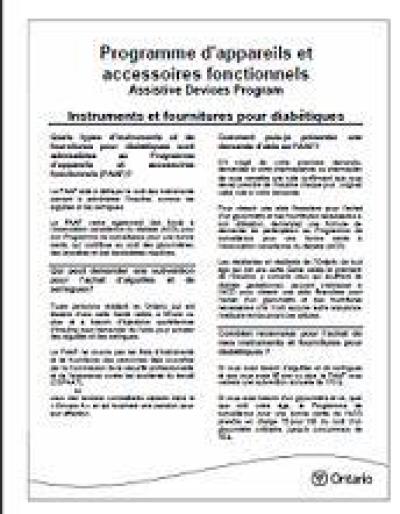 Programme d'appareils et accessoires fonctionnels: Instruments et fournitures pour diabétiques