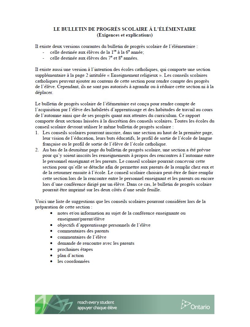 Le bulletin de progres scolaire a l'elementaire