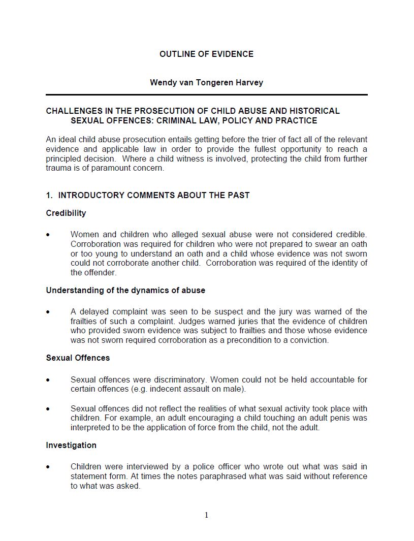 OUTLINE OF EVIDENCE: Wendy van Tongeren Harvey