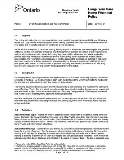 Policy: LTCH Reconciliation and Recovery Policy July 2010