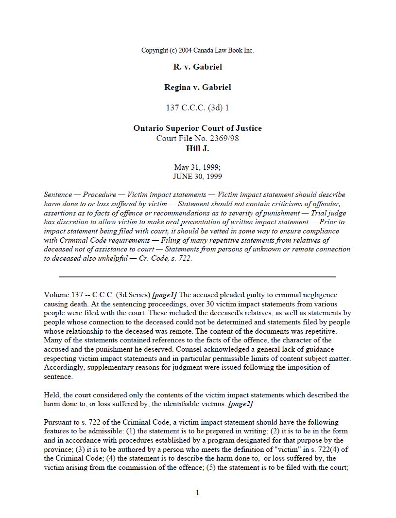 R. v. Gabriel - Ontario Superior Court of Justice: Court File No. 2369/98