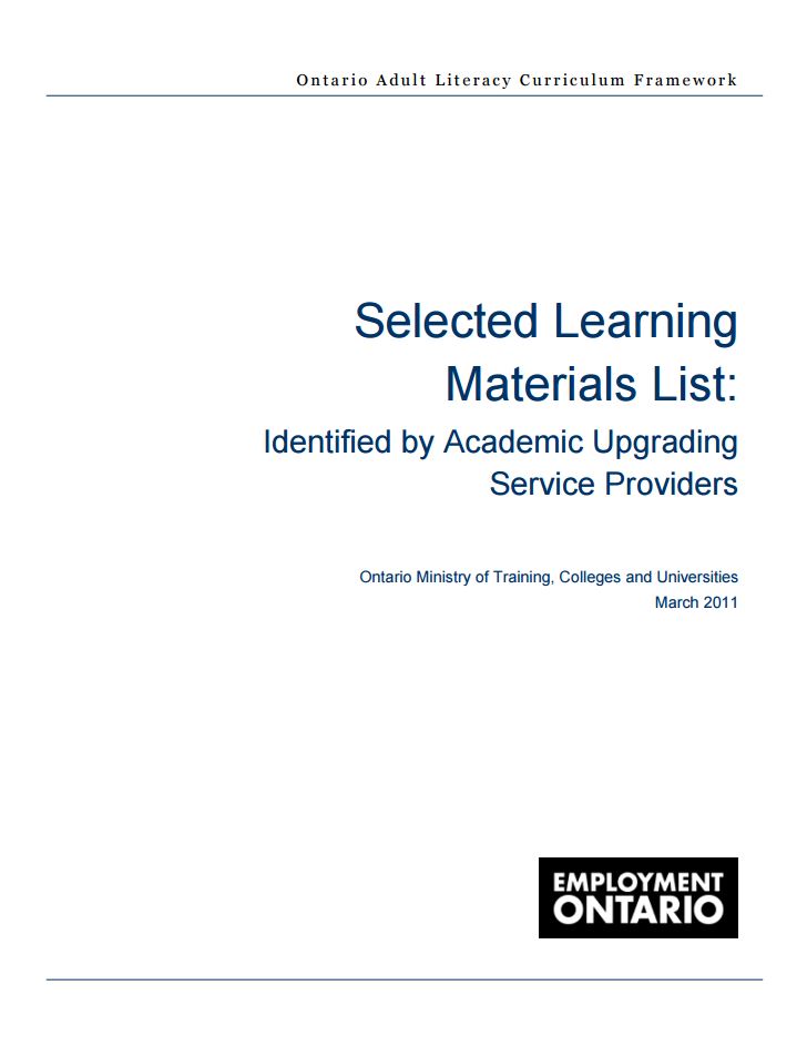 Selected Learning Materials List: Identified by Academic Upgrading Service Providers